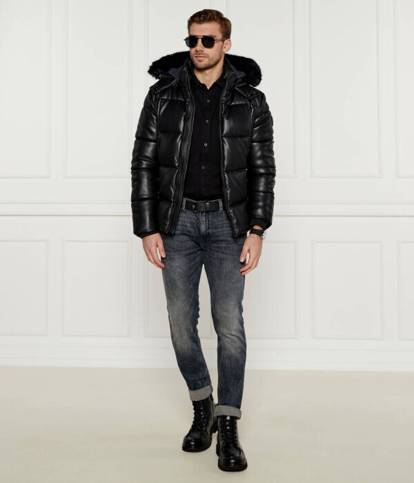 Куртка мужская Guess Jeans из экокожи с мехом на капюшоне, черный