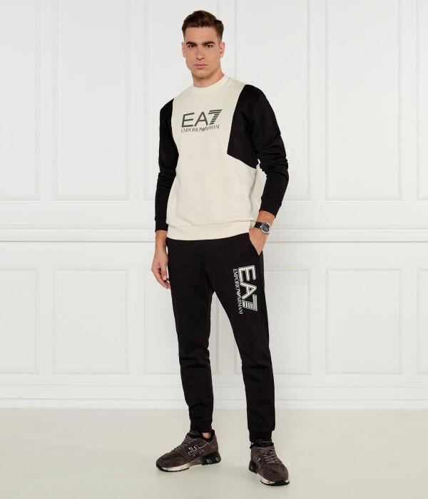Свитшот мужсокй Ea7 двухцветный с логотипом бренда, черно-бежевый