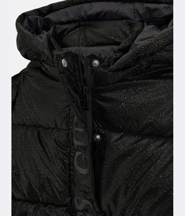 Куртка детская Guess с капюшоном блестящая, черный