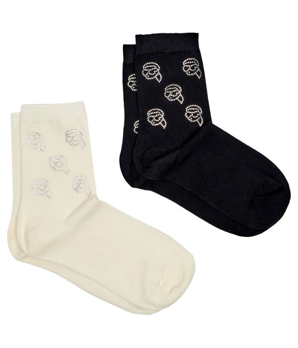 Носки женские Karl Lagerfeld хлопковые с принтом 2 пары, белый/черный