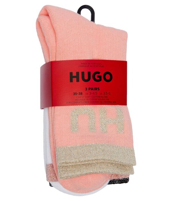 Носки женские Hugo Bodywear с логотипом 3 пары, розовый/белый