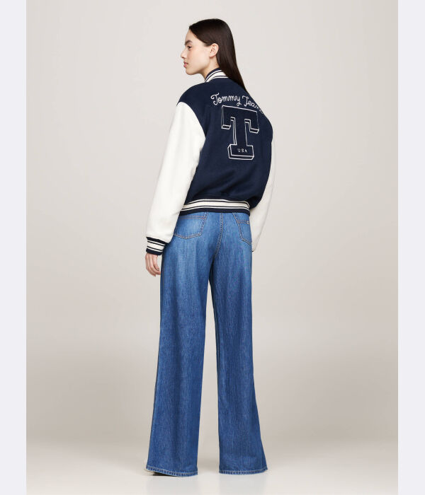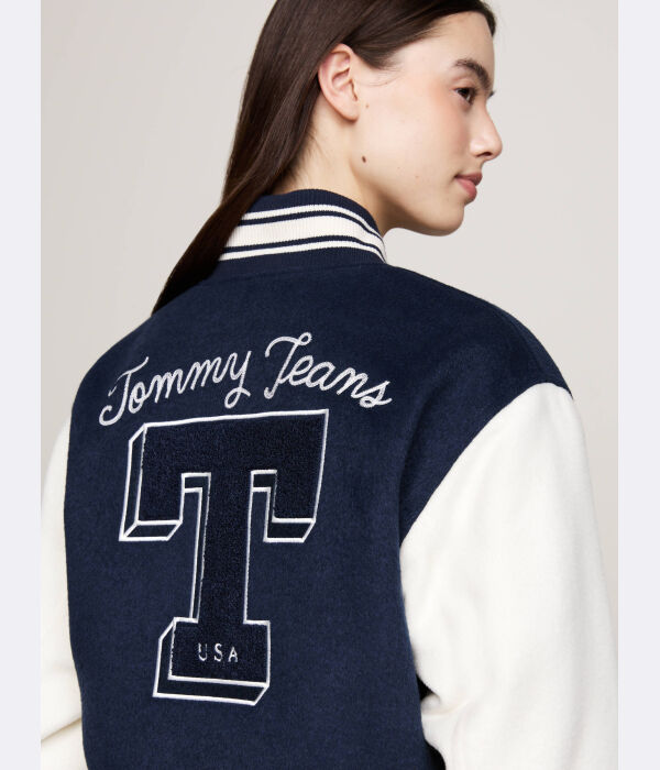 Куртка женская Tommy Jeans с вышивкой и добавлением шерсти, сине-белый