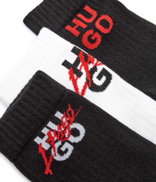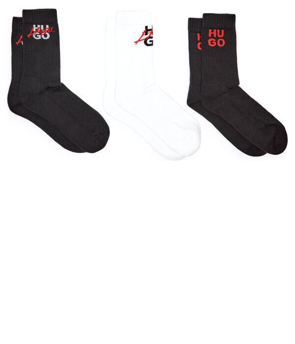 Носки мужские Hugo Bodywear высокие с логотипом бренда, черный/белый