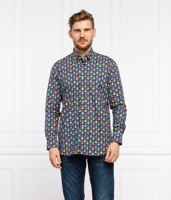 Рубашка мужская Emanuel Berg с разноцветным принтом, синий