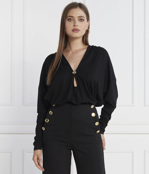 Лонгслив женский Pinko свободного кроя с вырезом на пуговице, черный 10 121₽