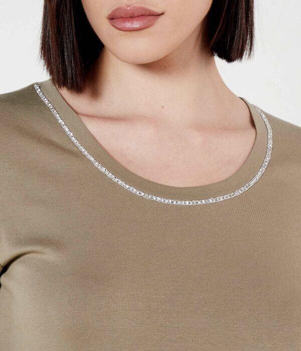 Блуза женская Marc Cain со стразами и круглым воротником, коричневый