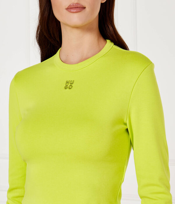 Лонгслив женский Hugo Dafilomena облегающего кроя укороченный, зеленый
