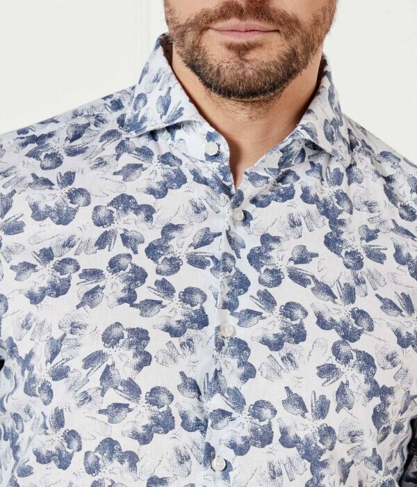 Рубашка мужская Joop! льняная с принтом, сине-белый