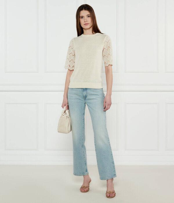 Джемпер женский Twin-Set ажурный с коротким рукавом, бежевый