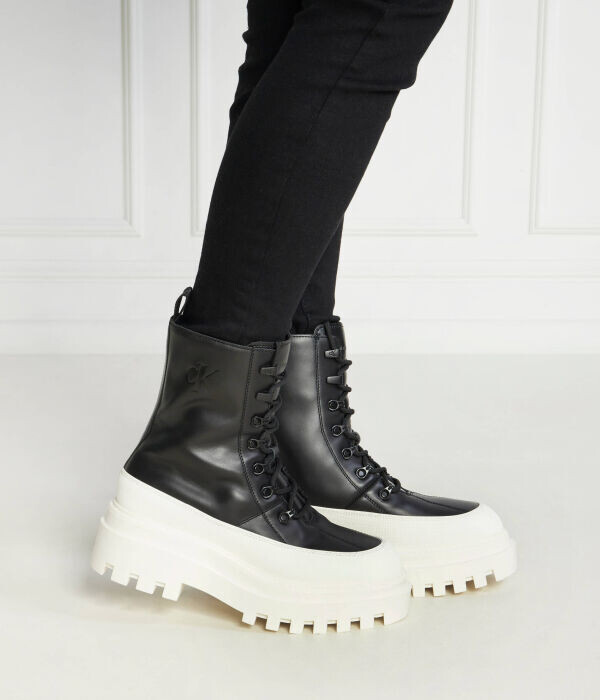 Ботильоны женские Calvin Klein Jeans высокие на шнуровке, черный/белый