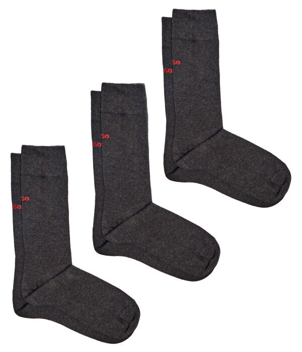 Носки мужские Hugo Bodywear высокие с логотипом бренда 3 пары, серый