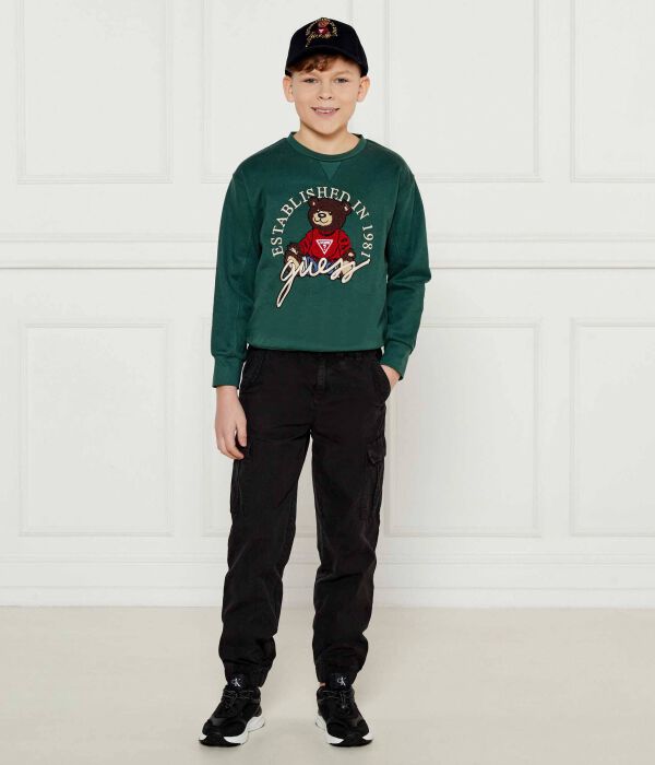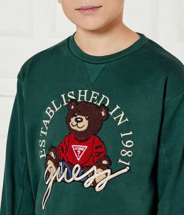 Толстовка детская Guess с вышивкой медведя, зеленый
