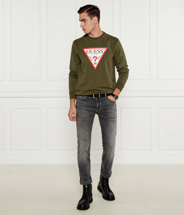 Толстовка мужская Guess Jeans с логотипом и круглым вырезом, зеленый