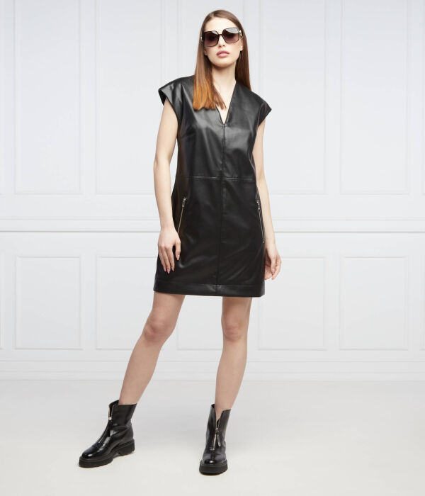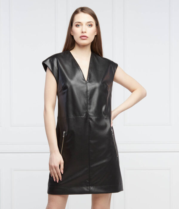 Платье женское Hugo короткое из экокожи с карманами, черный