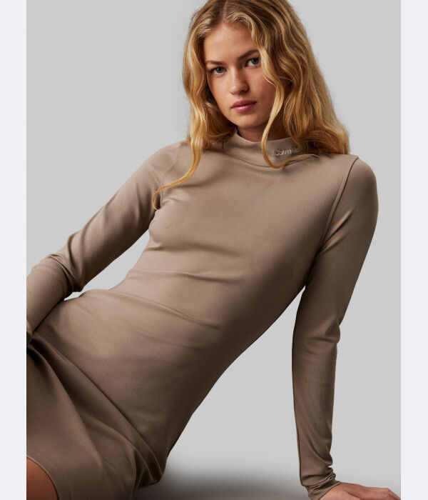 Платье Calvin Klein Jeans облегающее с длинными рукавами, бежевый