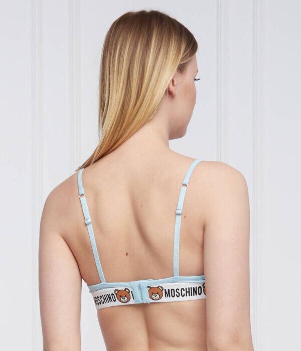 Бюстгальтер-бралетт Moschino Underwear хлопковый с фирменным принтом, голубой