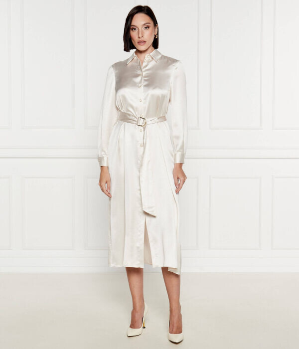 Платье-рубашка Liu Jo атласное с поясом, экрю