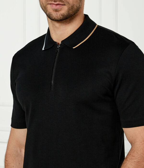 Футболка поло мужская Boss с воротником на молнии, черный
