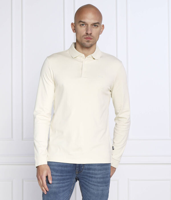 Поло мужское Boss хлопковое с длинным рукавом, бежевый