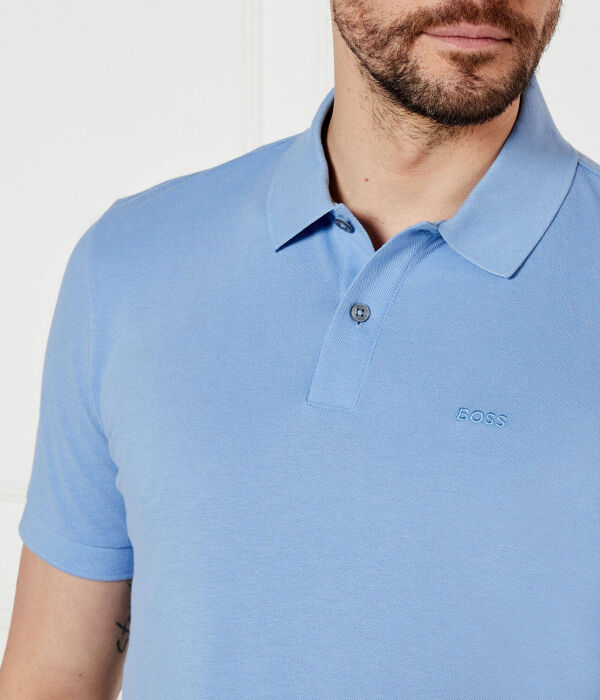 Футболка поло мужская Boss облегающего кроя однотонная, голубой