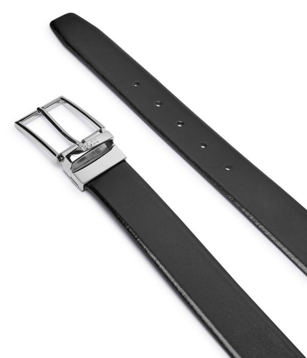 Ремень мужской Boss двусторонний кожаный, черный