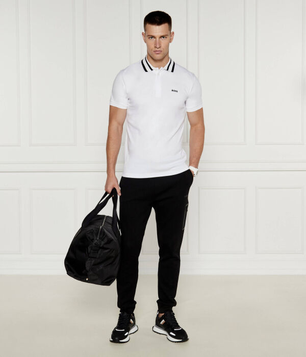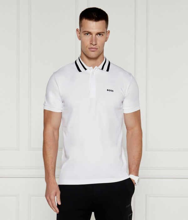 Футболка поло мужская Boss Green с полосками на воротнике, белый