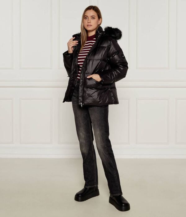 Пуховик женский Calvin Klein с капюшоном с мехом, черный