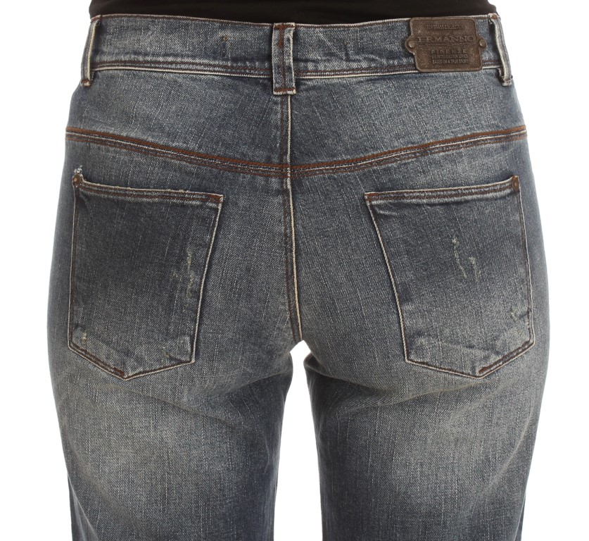 Откройте для себя воплощение итальянского мастерства с этими джинсами Ermanno Scervino. Эти джинсы совершенно новые с бирками, гарантирующими их подлинность и нетронутое качество. Разработанные для шикарной облегающей посадки с прямыми штанинами, которые предлагают сочетание комфорта и стиля, они изготовлены из высококачественных материалов с добавлением полимера для идеальной растяжки. Их яркая синяя потертость идеально подходит для универсального стиля, будь то повседневный выход или более изысканный образ.