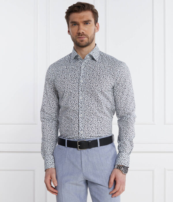 Рубашка мужская Boss облегающего кроя с принтом, бело-черный