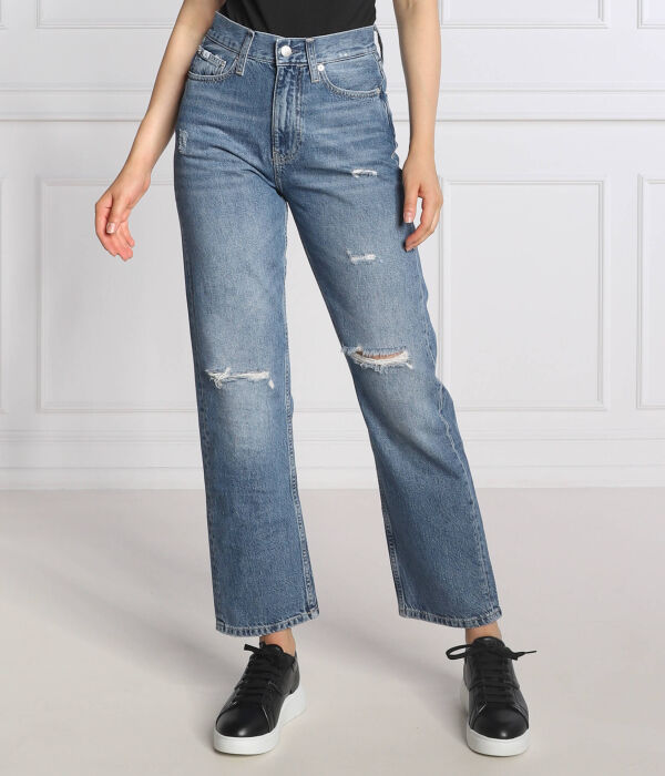 Джинсы женские Calvin Klein Jeans прямого кроя рваные, синий 9 815₽