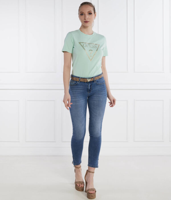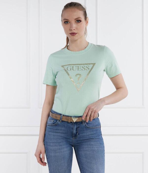 Футболка женская Guess Jeans с золотистым принтом, зеленый