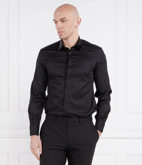 Рубашка мужская Emporio Armani из лиоцелла с декорированным воротником, черный