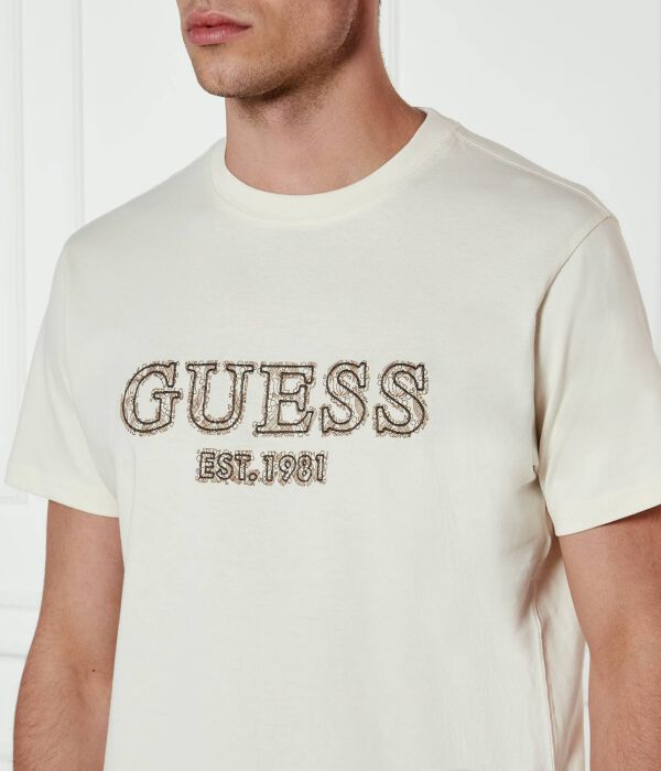 Футболка мужская Guess Jeans с надписью с узором, экрю