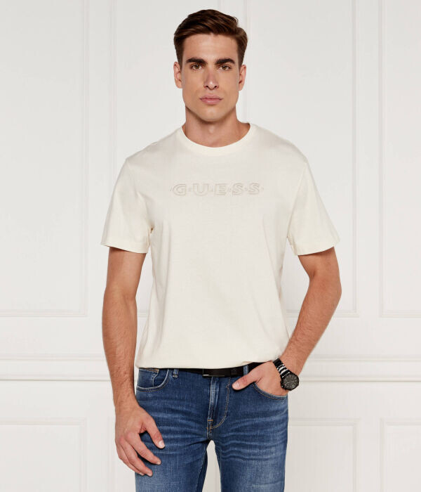 Футболка мужская Guess Jeans с вышивкой, экрю