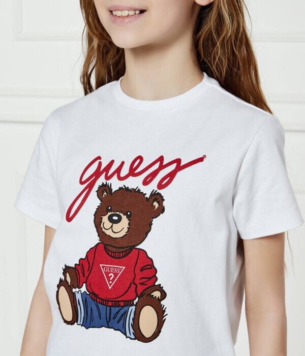 Футболка детская Guess из органического хлопка с принтом медведя, белый