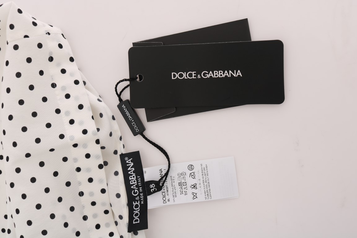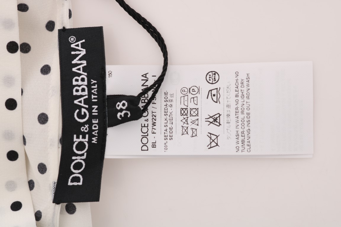 Побалуйте себя вневременной элегантностью Dolce & Gabbana с этой потрясающей шелковой блузой с классическим рисунком в горошек. Блузка демонстрирует короткие рукава, идеально подходящие для изящного и универсального образа. Изготовленный в Италии, этот топ олицетворяет роскошь и тонкое мастерство.