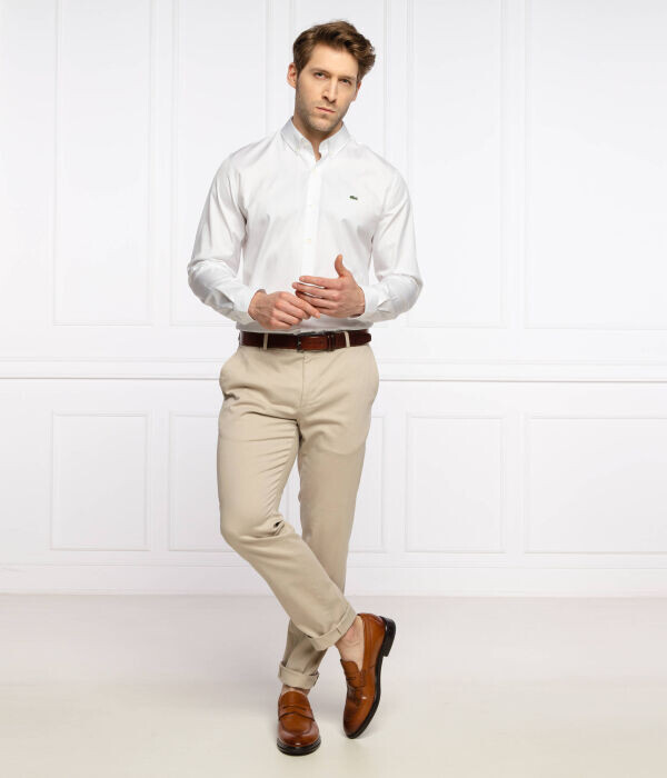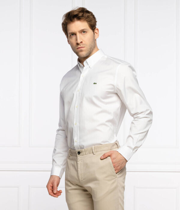 Рубашка мужская Lacoste облегающего кроя с логотипом бренда, белый