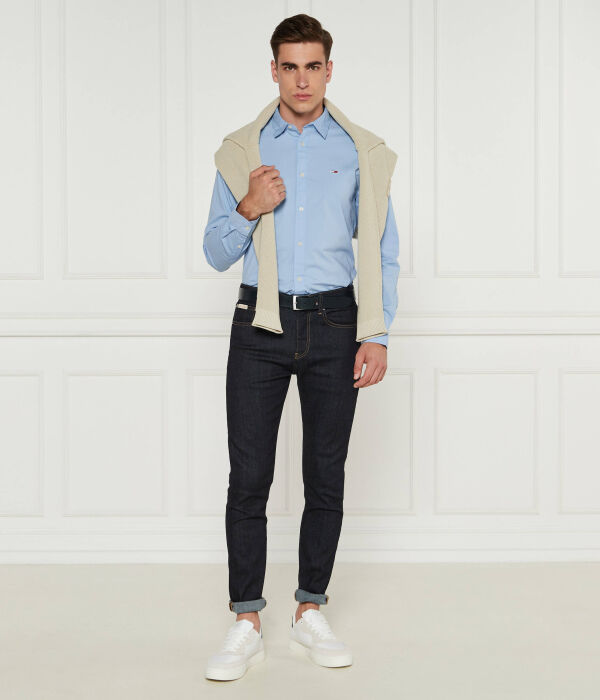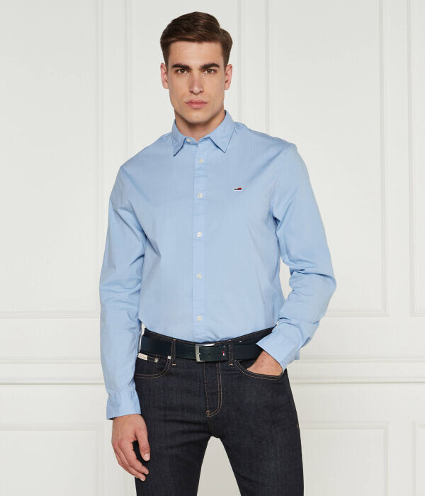 Рубашка мужская Tommy Jeans хлопковая с логотипом бренда, голубой