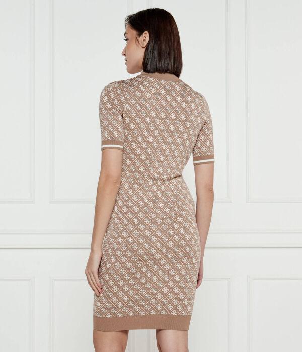 Платье Guess Jeans с принтом короткое, бежевый