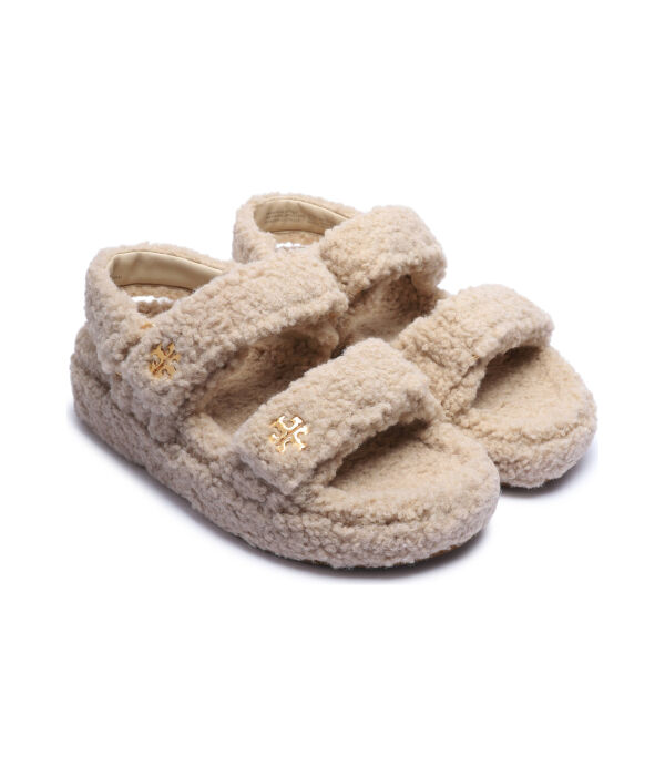 Сандалии из овчины Tory Burch Kira с элементами кожи, бежевый