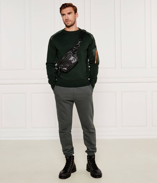 Джемпер мужской из мериносовой шерсти Parajumpers с карманом на рукаве, зеленый