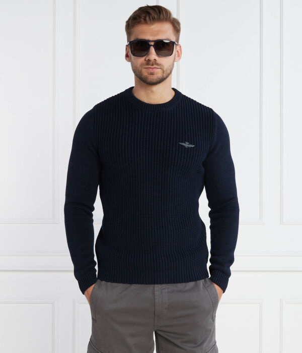 Свитер мужской Aeronautica Militare хлопковый облегающий, синий