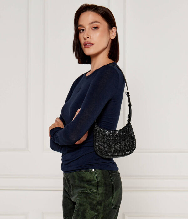 Сумка-хобо женская Pinko кожаная со стразами, черный