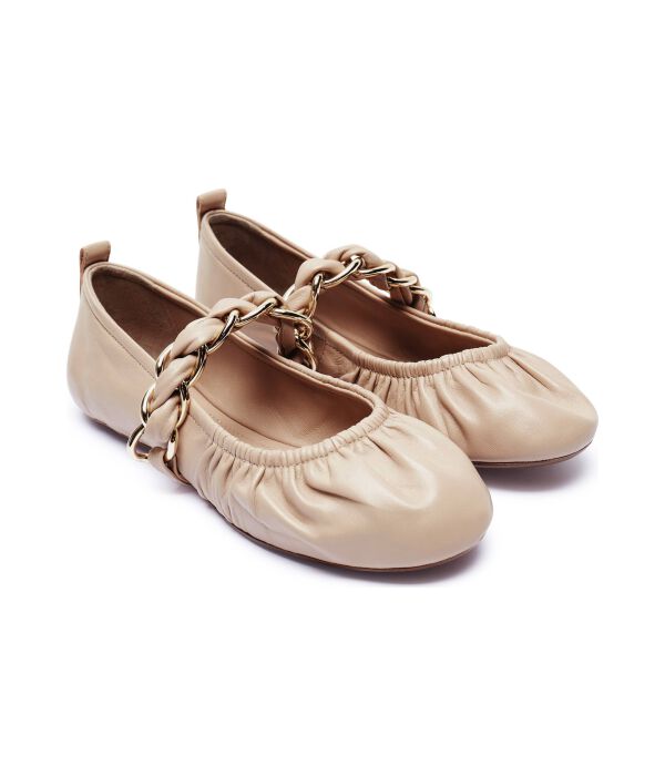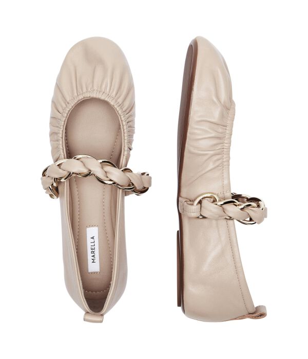 Балетки женские Marella кожаные с декоративной цепочкой, бежевый