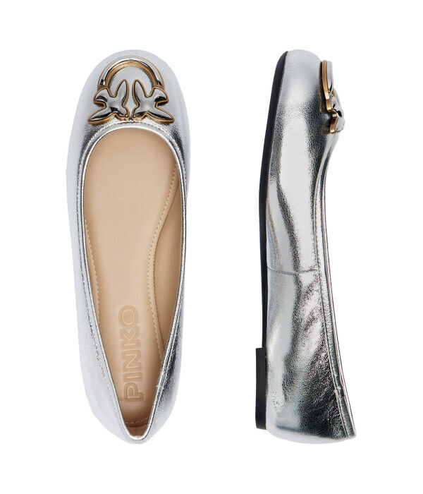 Балетки женские Pinko кожаные с пряжкой, серебряный