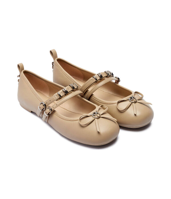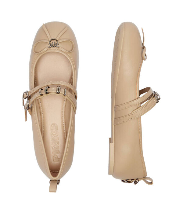 Балетки женские Pinko кожаные с ремешками, бежевый