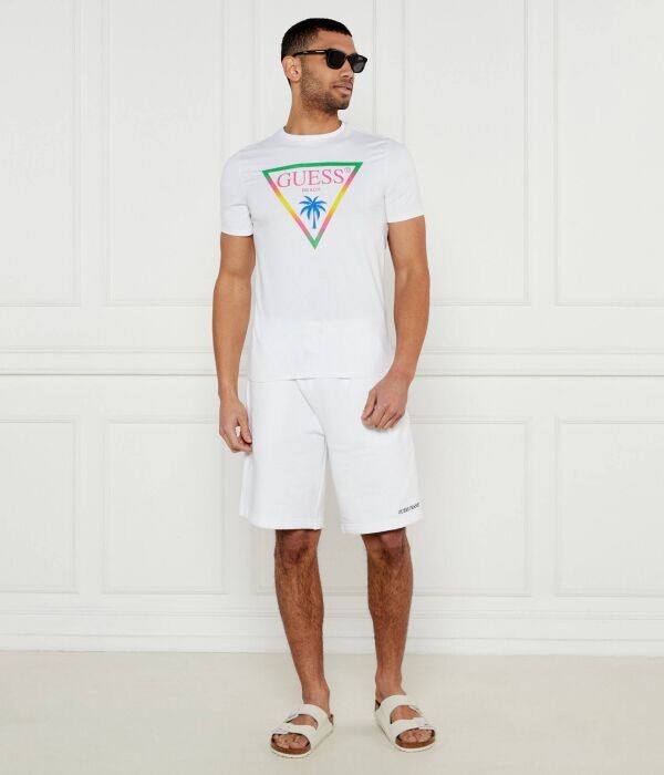 Футболка мужская Guess Underwear с разноцветным логотипом, белый