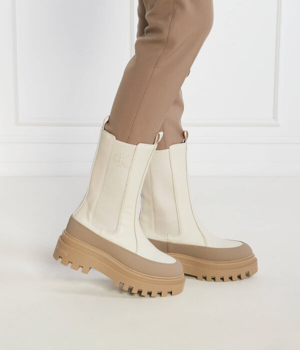 Ботинки кожаные Calvin Klein Jeans Chelsea Flatform, бежевый