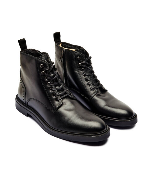 Ботинки мужские Boss кожаные на шнуровке, черный