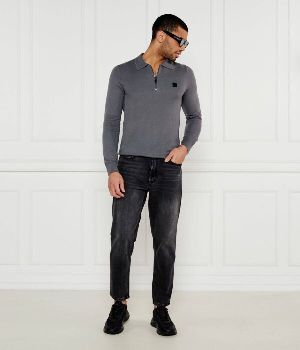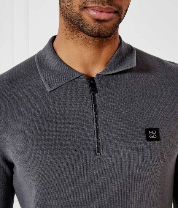 Поло мужское Hugo Sastone на молнии с длинным рукавом, серый